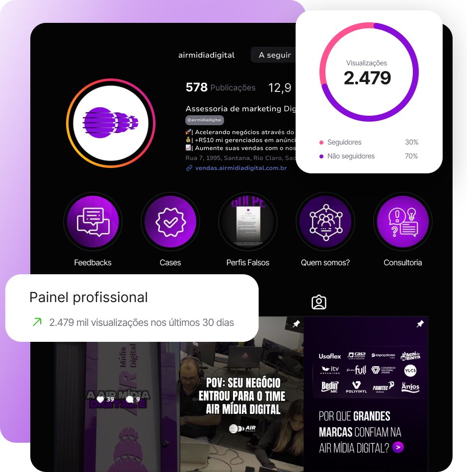 Tenha um braço estratégico de elite para acelerar sua escala ou terceirize toda a sua operação de Growth com a Air Mídia Digital.